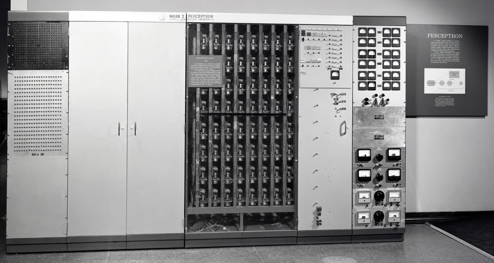В 1958 году он опубликовал теорию перцептрона, а уже в 1960-м построил настоящий аппарат под названием Mark-1 Perceptron. Это была большая машина размером с комнату.