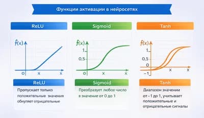 Каждая из этих функций по-разному влияет на обработку информации нейросетью и может использоваться в разных типах задач.