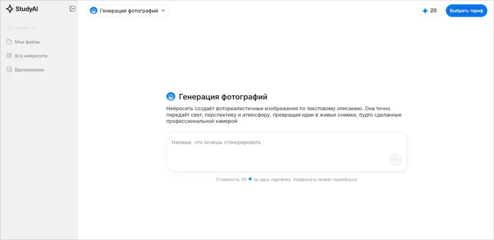 Сервис позиционирует себя как «одно окно» для всего спектра задач с искусственным интеллектом, и в части генерации изображений это действительно ощущается на практике. Здесь собраны лучшие инструменты для создания стилизованных снимков, и переключаться между ними можно прямо в чате. Особенно удобно, что система использует внутреннюю валюту — энергию — и всегда видно, сколько тратишь на каждый запрос. Интерфейс полностью на русском языке, регистрация через Яндекс, Гугл или ВКонтакте — ничего лишнего. Сервис ориентирован на широкую аудиторию: от студентов и блогеров до маркетологов и дизайнеров, которым нужен быстрый доступ к топовым моделям без зарубежных карт.