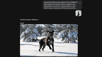 Видео с танцующими собаками ИИ само по себе сложнее из-за главного персонажа — длинные лапы, другой центр тяжести, виляющий хвост как отдельная часть для проработки. Чтобы добиться по-настоящему забавного и не кринжового результата, беру фото собаки в стойке (все четыре лапы видны, голова поднята, хвост расслаблен) и референсы с прыжками, простыми шагами или энергичным подпрыгиванием. Избегаю слишком человеческих хореографий вроде тверка — модель может сделать позы неестественными.