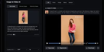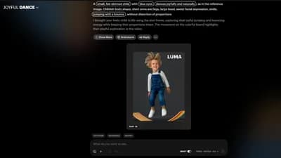 Здесь, что называется, текст в помощь, когда жесткого референса нет или хочется максимально покреативить. Пишете подробный промпт, например: «молодая девушка в неоновом платье энергично танцует хип-хоп на крыше небоскреба ночью, динамичная камера, реалистичная физика, высокая детализация», и модель генерирует видео с нуля. С Ray3 и обновлениями физика движений стала кинематографичной — колебания одежды, освещение и пр. Подходит для выдуманных сцен, где точная хореография не критична: трендовые абстрактные танцы, фантастические персонажи. Иногда ИИ «придумывает» движения по-своему, но качество видео высокое, 1080p.