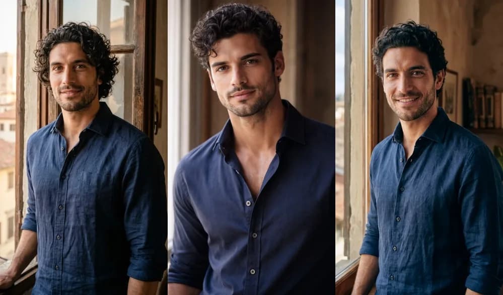 Пример хорошо структурированного промпта: «Портретное фото красивого итальянского мужчины, 30 лет [субъект], оливковая кожа, темные кудрявые волосы, карие глаза, сильный подбородок, легкая щетина [внешность], в темно-синей рубашке, стоящий у окна [контекст], мягкое естественное боковое освещение, теплая атмосфера, легкая улыбка [атмосфера], фотореалистично, качество 8K, четкая фокусировка [технические параметры]».