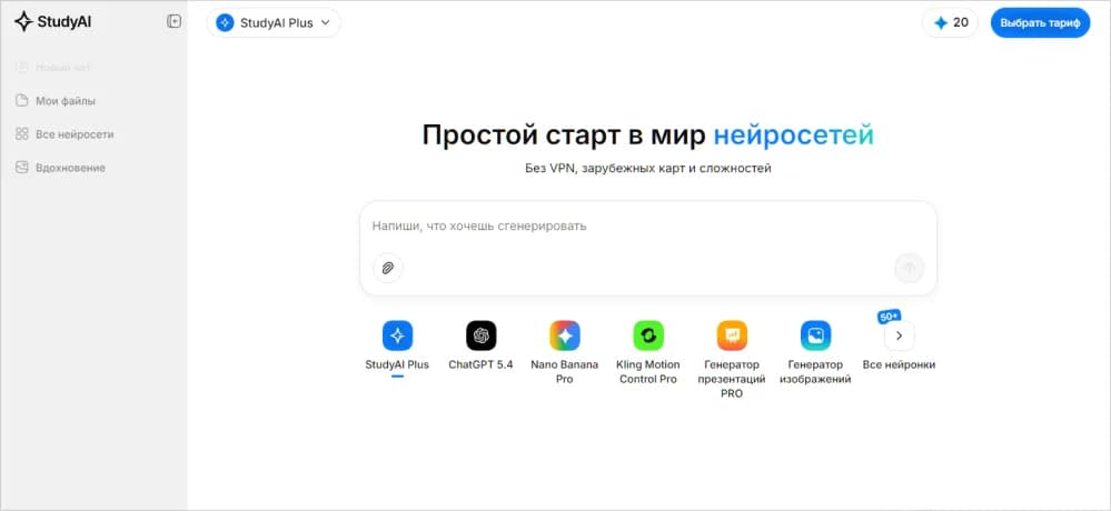 Агрегатор нейросетей и нейро-офис, который объединяет текстовые, графические, аудио- и видеоинструменты в одном сервисе. Он подходит для генерации изображений, работы с текстом, создания контента и использования популярных моделей вроде ChatGPT, Midjourney и других без переключения между разными платформами. Для открыток и иллюстраций сервис особенно удобен тем, что позволяет быстро тестировать разные модели и форматы визуала в одном интерфейсе.