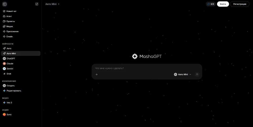 - MashaGPT — российский агрегатор нейросетей с продуманной системой токенов и доступом к самым актуальным моделям генерации: Midjourney, Flux, GPT Image, Nano Banana и Seadream.