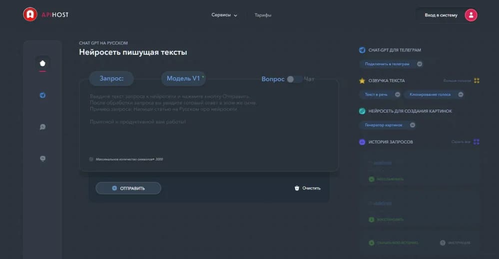Российский многофункциональный сервис с GPT-чатом на базе моделей OpenAI, ориентированный на работу с текстом, озвучкой и клонированием голоса под одной крышей. Для создания поздравлений здесь доступны модели GPT-5 и GPT-5-mini с посимвольной тарификацией без обязательной подписки — платите только за то, что используете. Уникальная особенность платформы — возможность сразу озвучить готовый поздравительный текст одним из профессиональных голосов или клонированным собственным голосом, что позволяет создать по-настоящему личное голосовое поздравление. Сервис полностью на русском языке, оплата через российские карты без дополнительных схем.