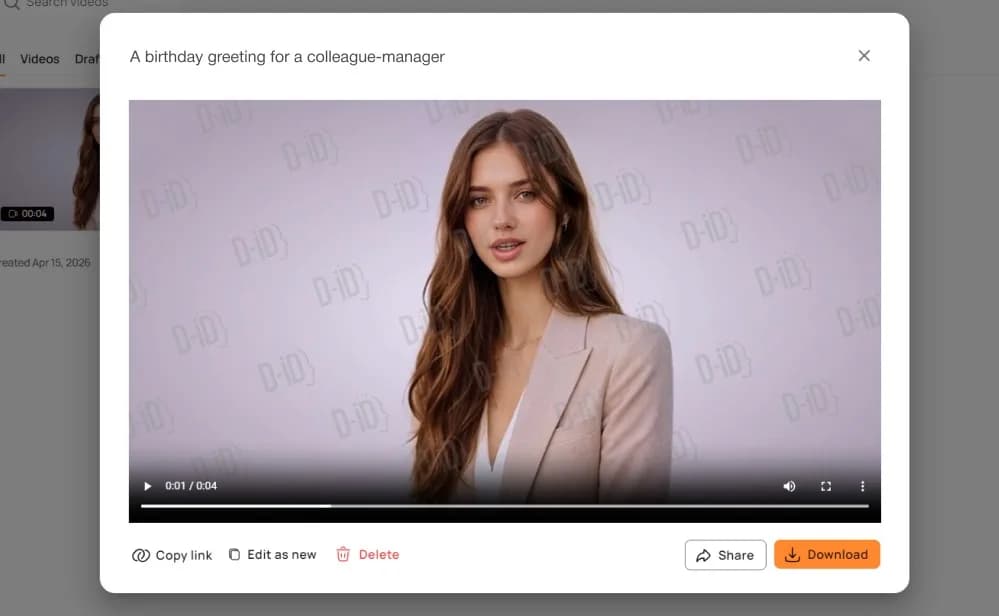 - Видеоаватар и анимация. Еще один уровень — видеоаватар. Сервисы вроде HeyGen или D-ID позволяют создать персонажа, который «зачитывает» ваш текст с реалистичной мимикой и липсинком (Lip-sync). Это выглядит эффектно и отлично подходит для корпоративных поздравлений, видеооткрыток или когда нужно добавить щепотку технологичного wow-эффекта.