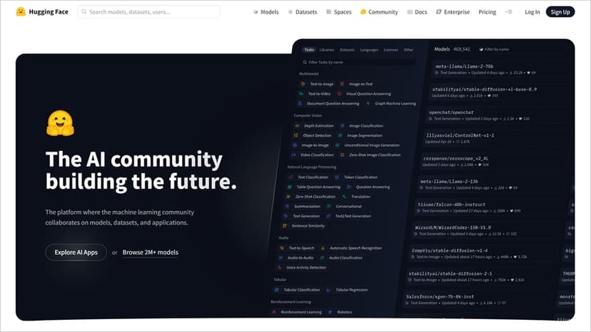 Фактически крупнейший центр экосистемы открытых ИИ. На платформе размещено более 1 миллиона моделей, датасетов и приложений, что отражает экспоненциальный рост сообщества AI-разработчиков. Платформа стала для многих разработчиков тем, чем GitHub стал для open-source разработки ПО: здесь публикуют веса моделей, проводят обучение, делятся инструментами и даже разворачивают готовые решения. Среди проектов на Hugging Face можно найти все — от языковых LLM до специализированных моделей для анализа изображений, аудио- и мультизадачных рабочих процессов. Сама компания привлекла значительные инвестиции и оценивается в несколько миллиардов долларов, что показывает стратегическое значение открытых моделей в современной AI-индустрии.