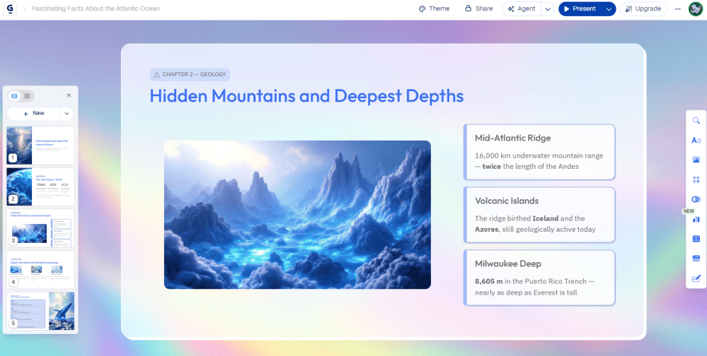 С помощью Gamma, Beautiful.ai, Tome, SlidesAI, Microsoft Copilot или аналогичных — вводите промпт, уточняете тему, заметки при необходимости, PDF или даже ссылку на документ, и за 3–30 минут получаете полноценный проект со связной логикой текста, подходящими изображениями, инфографикой, диаграммами, цветовой схемой и даже анимированными переходами.
