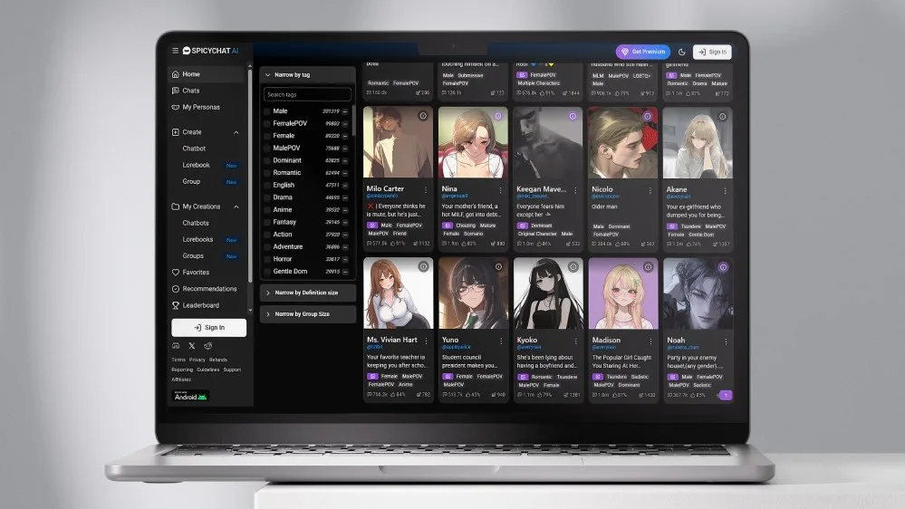 Spicychat ориентирован на клиентов 18+, но возможности платформы включают в себя не только романтические диалоги и сцены. Нейросеть поддерживает любые форматы общения между человеком и ИИ с заданными характеристиками.