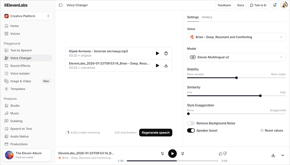 ИИ ElevenLabs — мощный инструмент, который меняет подход к аудиопроизводству. С реалистичным синтезом речи, удобным api и поддержкой русского языка сервис открывает возможности для контент-креаторов, бизнеса и разработчиков. Если хотите сэкономить время и получить профессиональный результат, начните с бесплатного аккаунта, протестируйте клонирование и озвучку. В большинстве случаев после первых экспериментов возвращаться к ранее используемым площадкам уже не хочется. Главное — творчески подходить к промптам. Создатели выпустили версию Eleven Music — новые инструменты для музыки с ИИ.