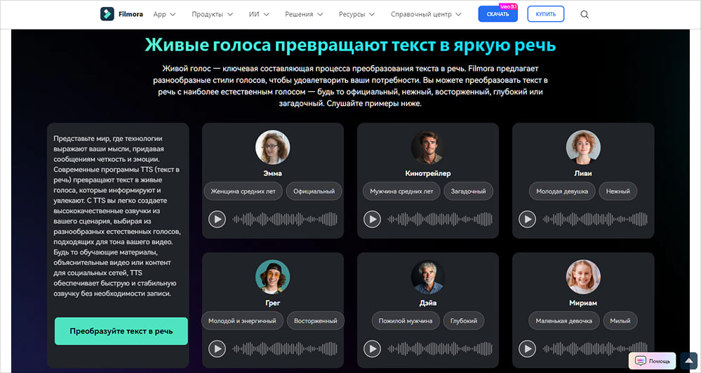 Превращает любой написанный текст в реалистичную озвучку. Можно выбрать голос, интонацию, скорость и даже эмоциональную окраску — идеально для закадрового голоса без записи в студии.