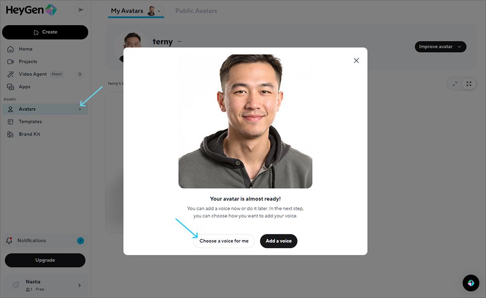 Вы загружаете образец голоса (например, свою запись), а HeyGen создает его цифровую копию. Затем этим голосом можно озвучивать любой текст.