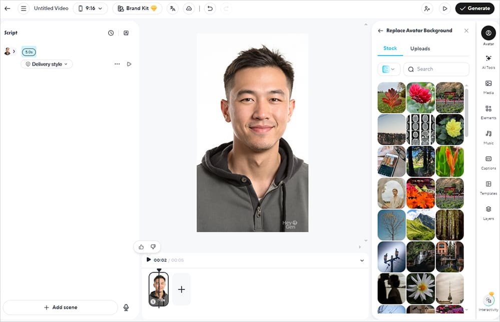 Встроенный редактор HeyGen позволяет как вручную добавлять субтитры, так и автоматически генерировать их из текста вашего сценария. Доступна гибкая настройка отображения: вы можете выбрать шрифт, размер, цвет текста и его положение на экране.