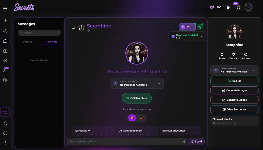 Secrets — это онлайн-платформа для общения с AI-персонажами, создания собственных образов и генерации визуального контента на основе заданного сценария. Сервис объединяет текстовое взаимодействие, персонализацию героев и инструменты для работы с изображениями и видео в одном интерфейсе.