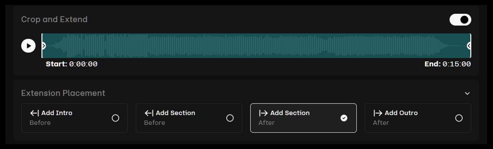 - Продюсерский режим и Extend. Ресурс позволяет собирать трек по частям. Через Extend композицию наращивают «кирпичиками»: добавляют интро, новые секции или аутро. Такой подход удобен для контроля формы и постепенной сборки цельного трека.