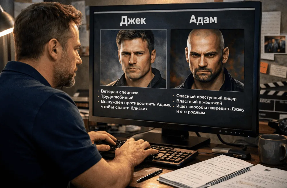Я не воспринимаю ИИ как замену сценариста. Для меня это, скорее, «второй мозг»: он не устает, не обижается на правки и может предложить 20 вариантов хода, пока я допиваю кофе. Когда у меня затык в сюжете, я обычно упираюсь в одно из двух: либо не вижу следующего действия героя, либо не понимаю, как логично подвести к сильному повороту. Тут ИИ работает как ускоритель для написания сценария: я задаю исходные условия, прошу 5–7 вариантов продолжения и сразу отбрасываю слабое, оставляя 1–2 зерна, из которых уже растет сцена.