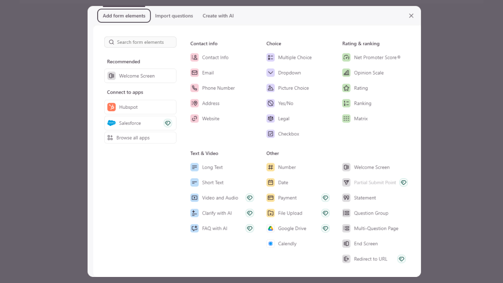 (добавление элементов для квиза в Typeform)